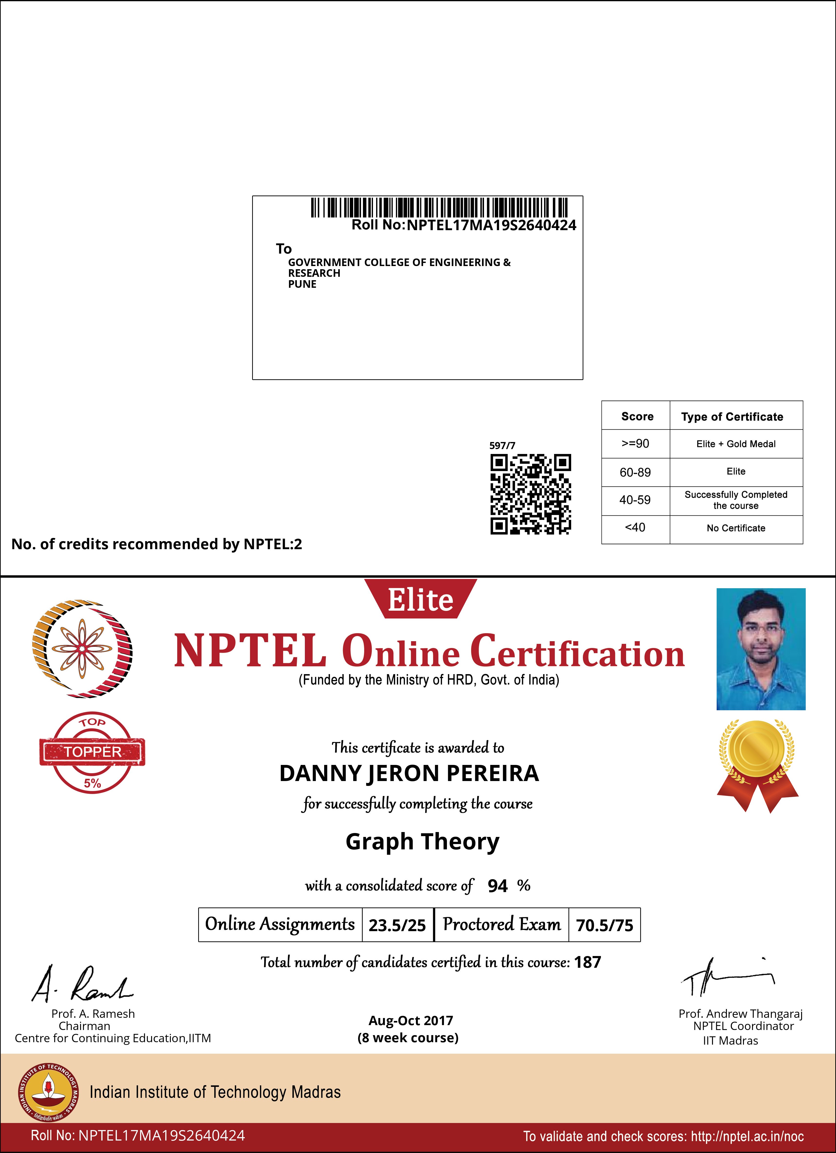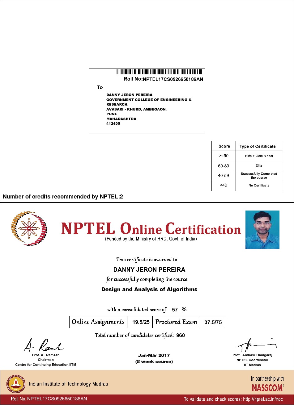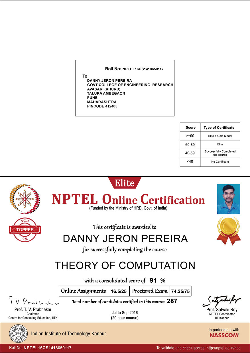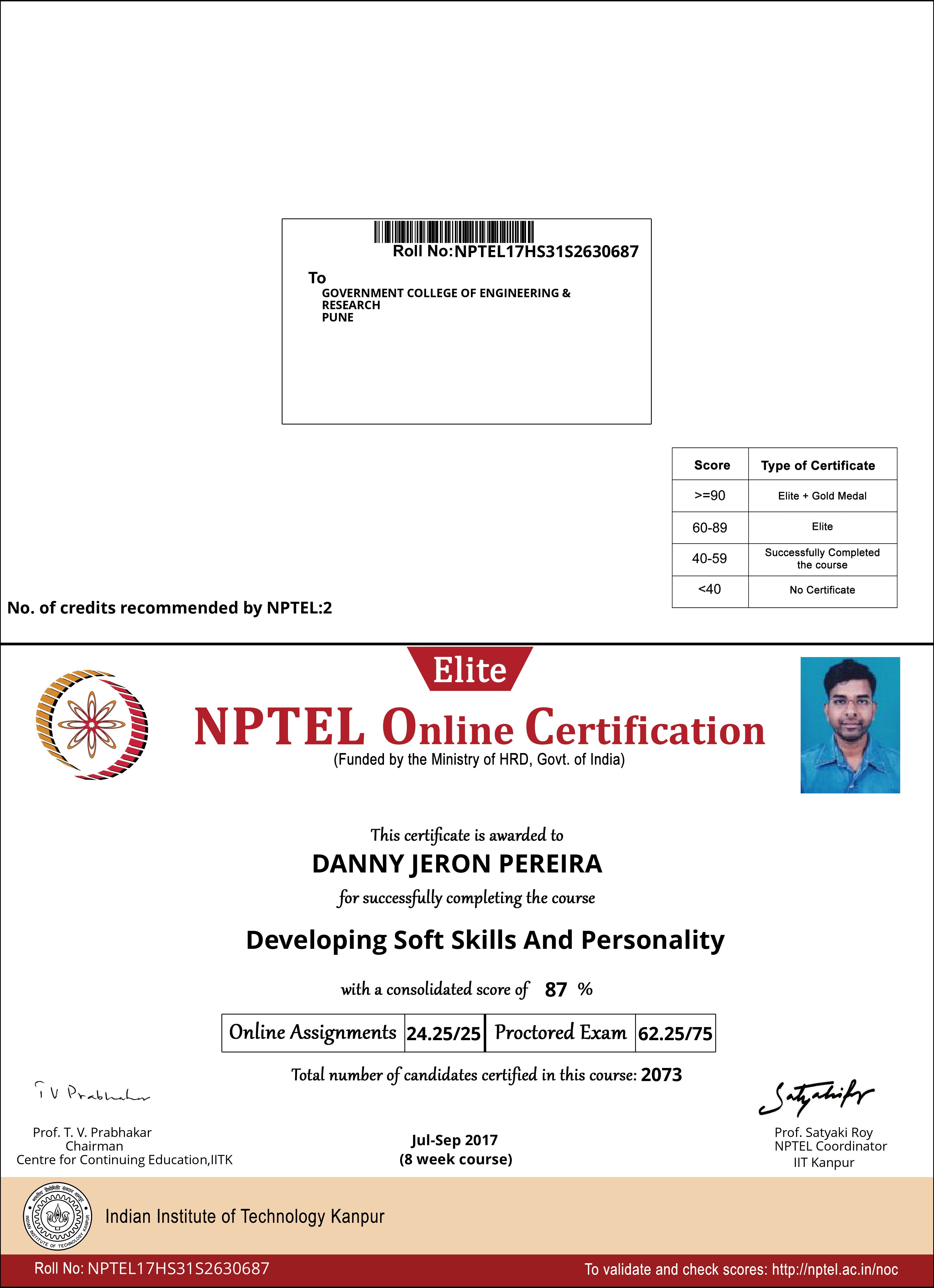 - C-DAC Certified Cyber Security Professional - [ CCCSP] Reg No: CSP/008-04022017-1. Cetificate