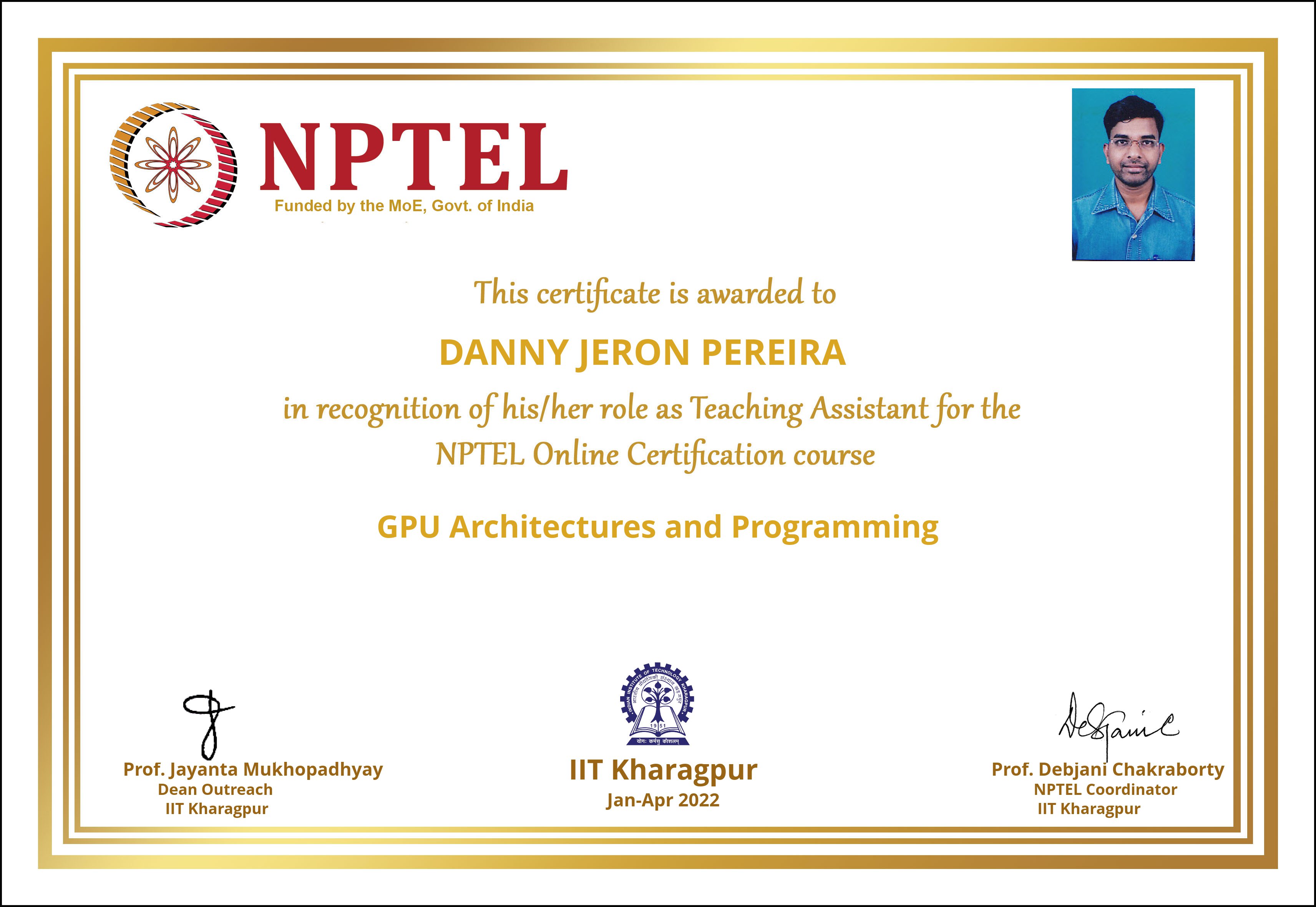 - Worked as Teaching Assistant for NPTEL course GPU Architecture and Programming in 2022 and 2023.